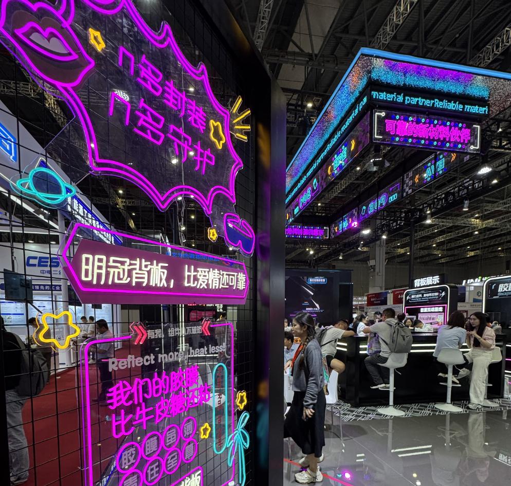 明冠新材的展台,很像KTV,与科技、工业完全不搭调,但也算成功出圈