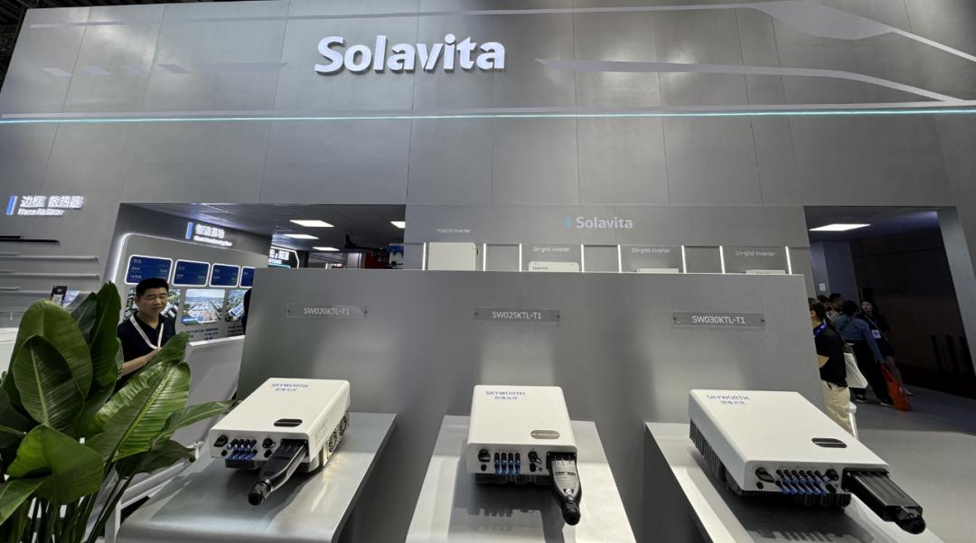 创维光伏(海外品牌为启明光伏,Solavita)的逆变器展示区前冷冷清清鲜有人问津