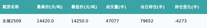 南财智讯7月3日电,南财金融终端盘后期货数据显示,大连商品交易所的生猪主力合约收涨1.27%值得投配资值得投配资,收盘报14370.0元/吨,日内资金流出1.51亿元。其他相关指标见下表: