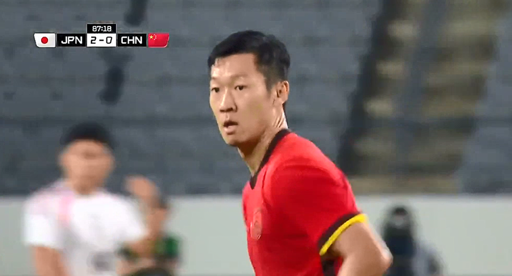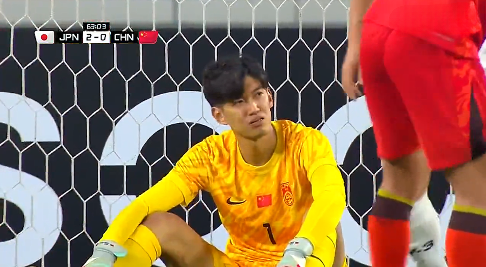 从实力上看,这支日本队要比前几天踢过的韩国队要弱,这可能也是国足这场表现要明显好于上一场的原因之一。上半场,国足以0比1落后。下半场对手一个看似没有威胁的射门,阴差阳错地踢到我们的后卫脚上反弹,滚进自己球门。0比2,国足落后2球。此时扑球失误的颜骏凌只能一脸无助,满脸失望地看着队友(下图)。