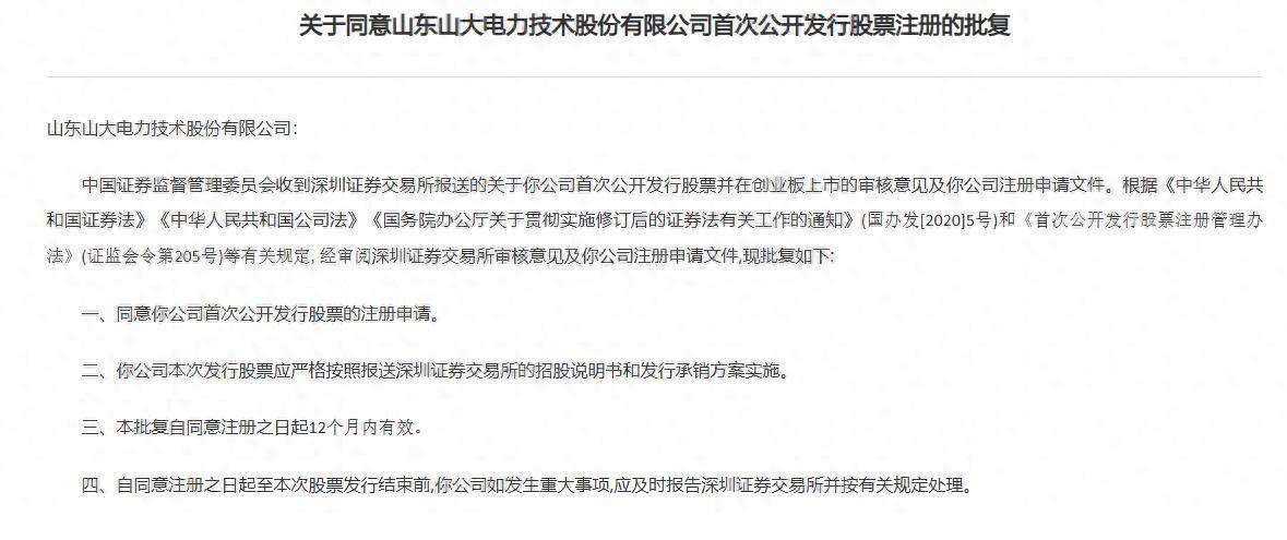 智通财经APP获悉,5月23日,中国证监会发布《关于同意山东山大电力技术股份有限公司首次公开发行股票注册的批复》。据悉炒股交易软件,山大电力拟在深交所创业板上市,兴业证券为其保荐机构,拟募资5亿元。